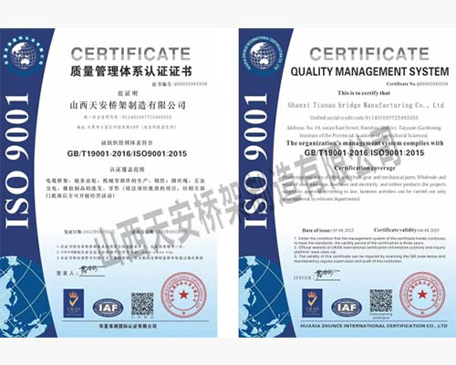 山西天安橋架制造有限公司是一家生產(chǎn)電纜橋架、母線槽的大型廠家,主要生產(chǎn):槽式橋架、托盤式橋架、梯級式橋架、大跨距橋架、母線槽有空氣型、密集型、耐火型、鋁合金等以及通風(fēng)管、可根據(jù)客戶要求定制各種型號各種規(guī)格,表面處理有熱鍍鋅、防火噴塑、防火漆、熱鍍鋅等,產(chǎn)品廣泛應(yīng)用于石油、化工、治金、電力、紡織、通訊、高層建筑等各個領(lǐng)域。產(chǎn)品具有外形美觀,耐腐蝕性強(qiáng),安裝靈活方便,品種齊全等特點。